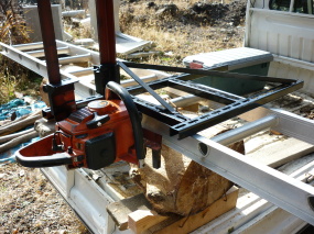 直角方向はそんなに長いバーは要らないのでshindaiwaのE−346に14インチのバーを付けて挽いて見ましたが横挽き用のソーチエンだったので横方向へ振れが大きいのでやはり縦挽き用が欲しい